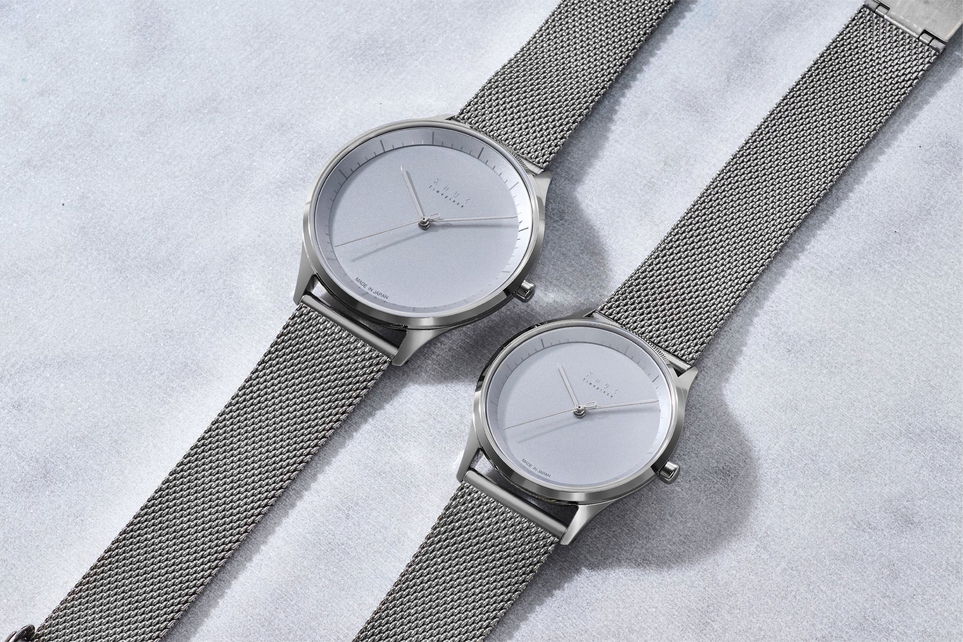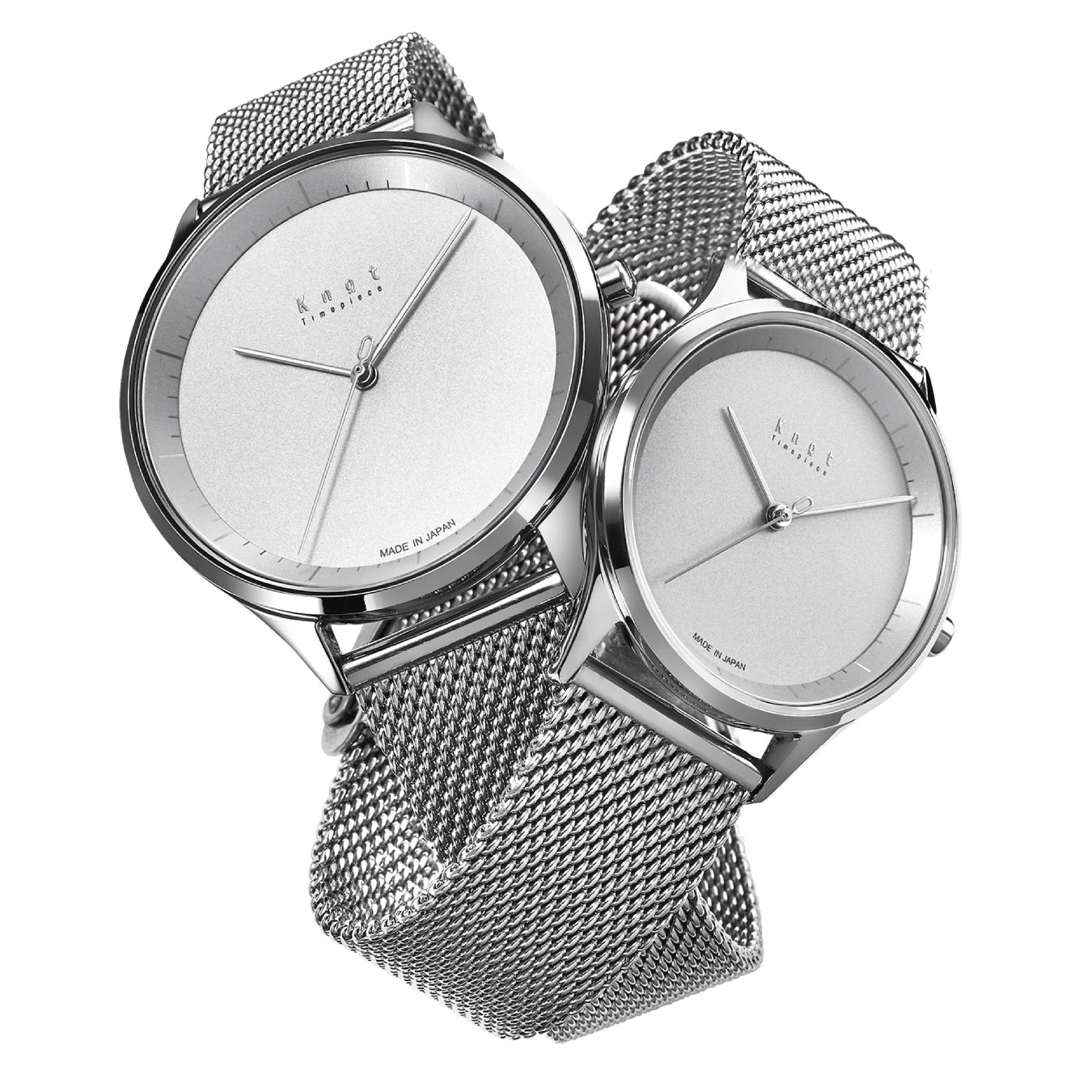 同じデザインでのサイズ違いはKnotで初めて。ユニセックスなデザインなのでどちらのサイズも男性女性問わずお使いいただけます。しっかりした腕元にフィットする38mmのフェイスと華奢な腕元にもフィットする32mmのフェイスを展開しているのでペアウォッチとしてもおすすめです。