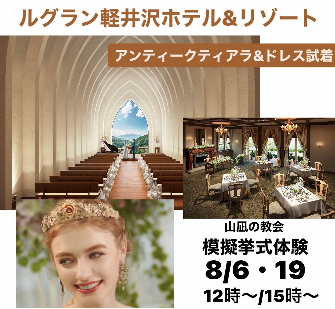 ◾️イベント:ルグラン軽井沢ホテル&リゾート 模擬挙式体験 アンティークティアラ&ドレス試着会