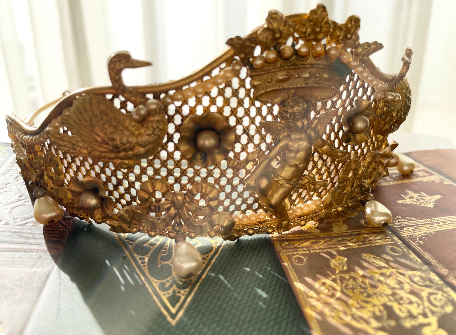 天使と白鳥が舞う神々の湖のアンティークティアラ / 1870年 イギリス
