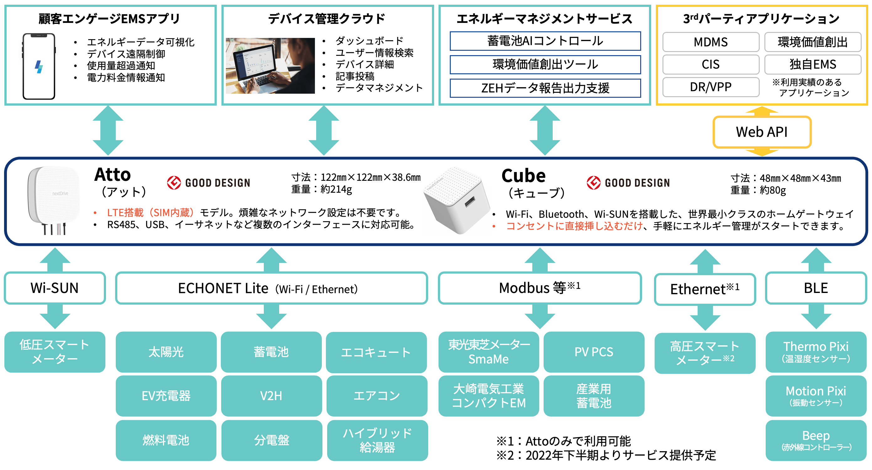 IoE(Internet of Energy:エネルギーとインターネットの融合)、IoT、HEMSを活用したエネルギー管理とクラウドサービスを開発・提供する、エネルギーデータ プラットフォーム企業です。IoTとソフトウェア・ハードウェア技術を統合し、電力会社をはじめとするエネルギー関連企業にワンストップでエネルギーデータ プラットフォームサービスを提供しています。