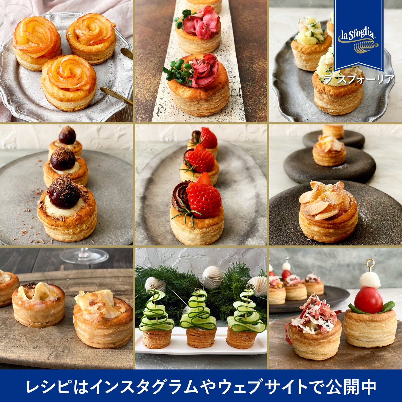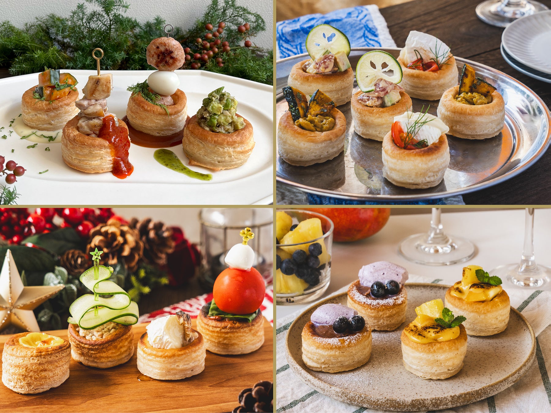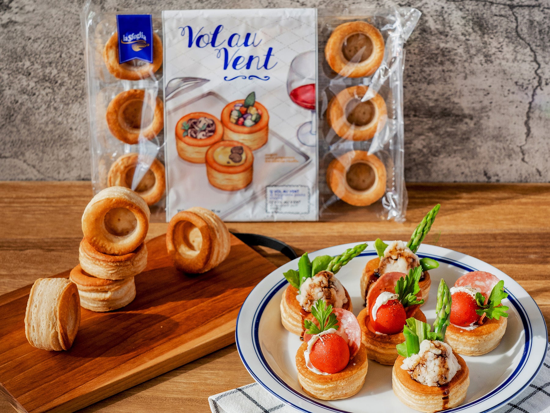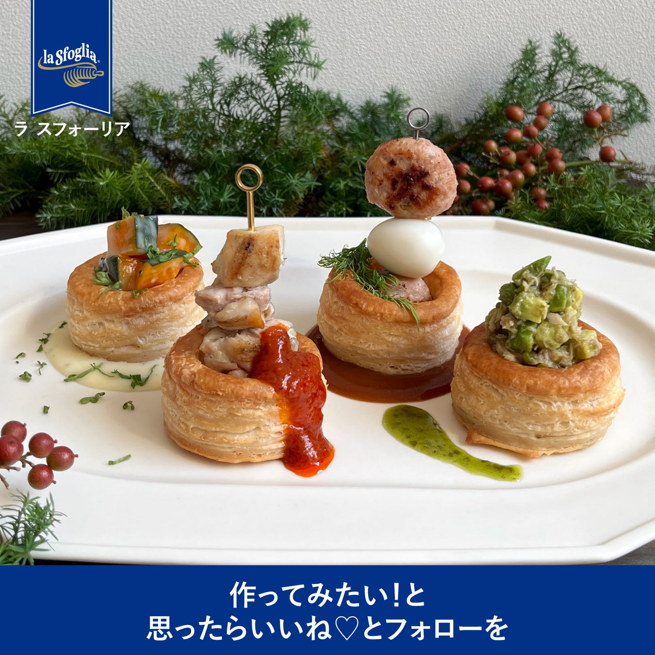 香ばしくパリッとしっかり焼かれたラ スフォーリアのボローバンは、ソースを入れても崩れにくく、さまざまなアレンジを楽しんでいただけます。手間をかけずにテーブルが賑やかになる、そんな夢のようなアイテムを使って今年のクリスマスディナーを作ってみては?