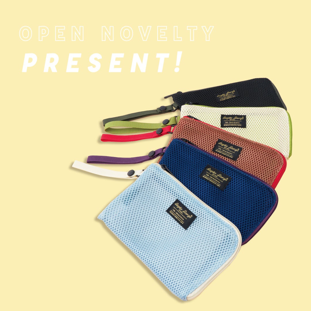 天王寺ミオ店にてお買い上げの方"先着300名様"限定で、レガートラルゴオリジナル「洗えるマルチポーチ」をプレゼントいたします。マスク、除菌スプレー、化粧品など…"サッとしまえて、ポイっと洗える"便利なポーチ。
