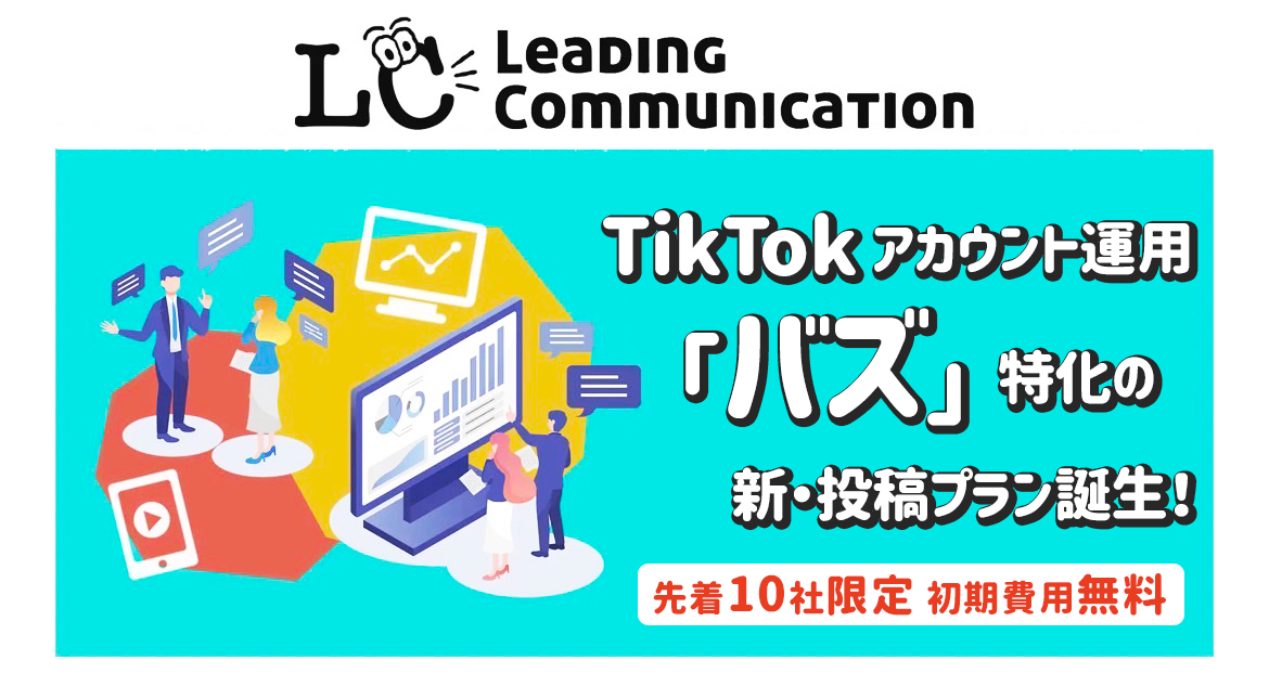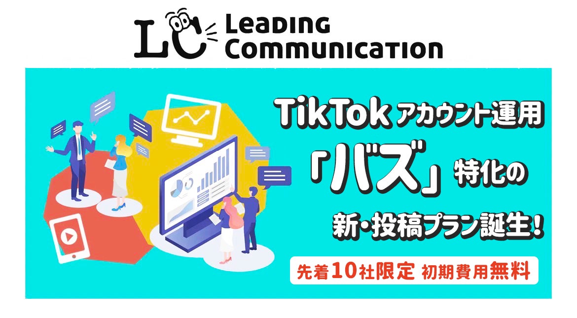 株式会社LeadingCommunication(本社:東京都渋谷区、代表取締役社⻑:細矢義明 以下、LC)はTikTokアカウント運用の新料金パッケージを開始することに伴い、先着10社限定で初期費用を無料にするキャンペーンを開始したことをお知らせいたします。