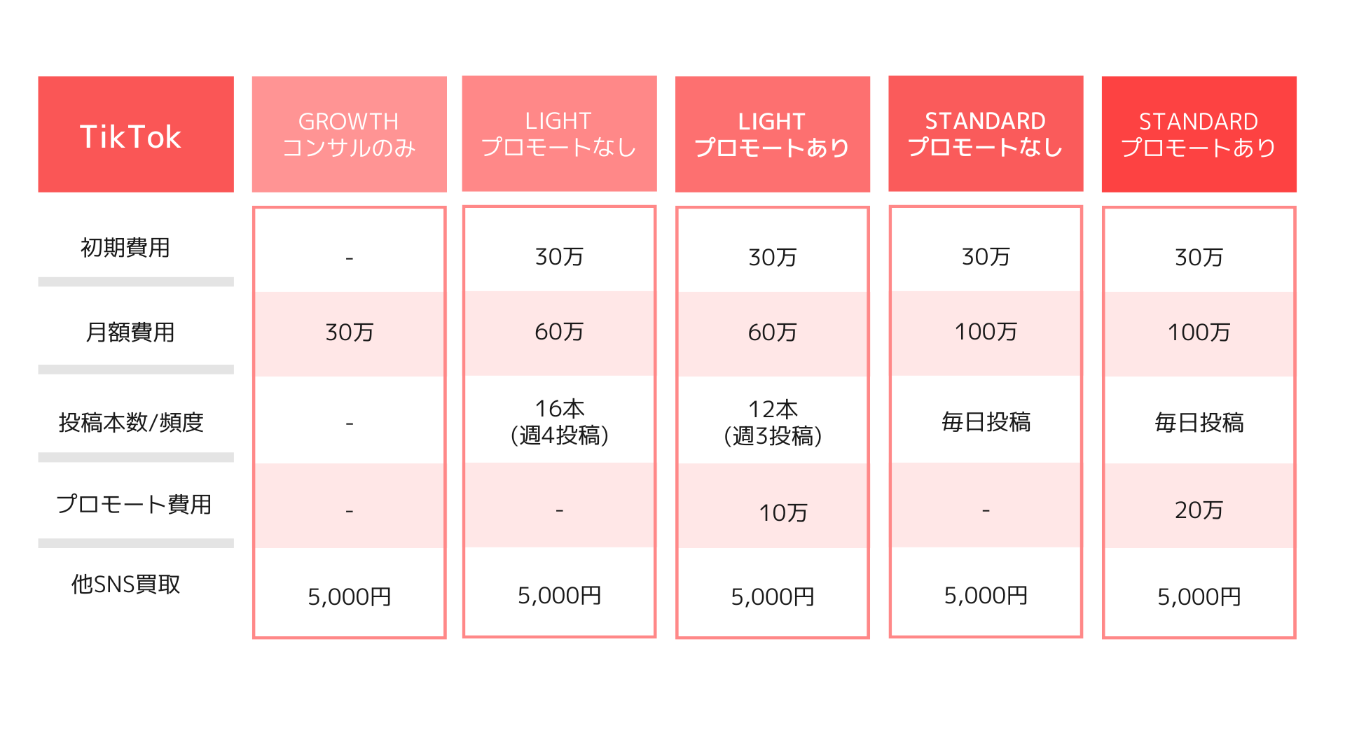 従来の料金プランに加え、TikTokのトレンドスピードをキャッチアップし、動画に反映するため、制作本数を2倍に増加した毎日動画投稿プランをご用意しました。