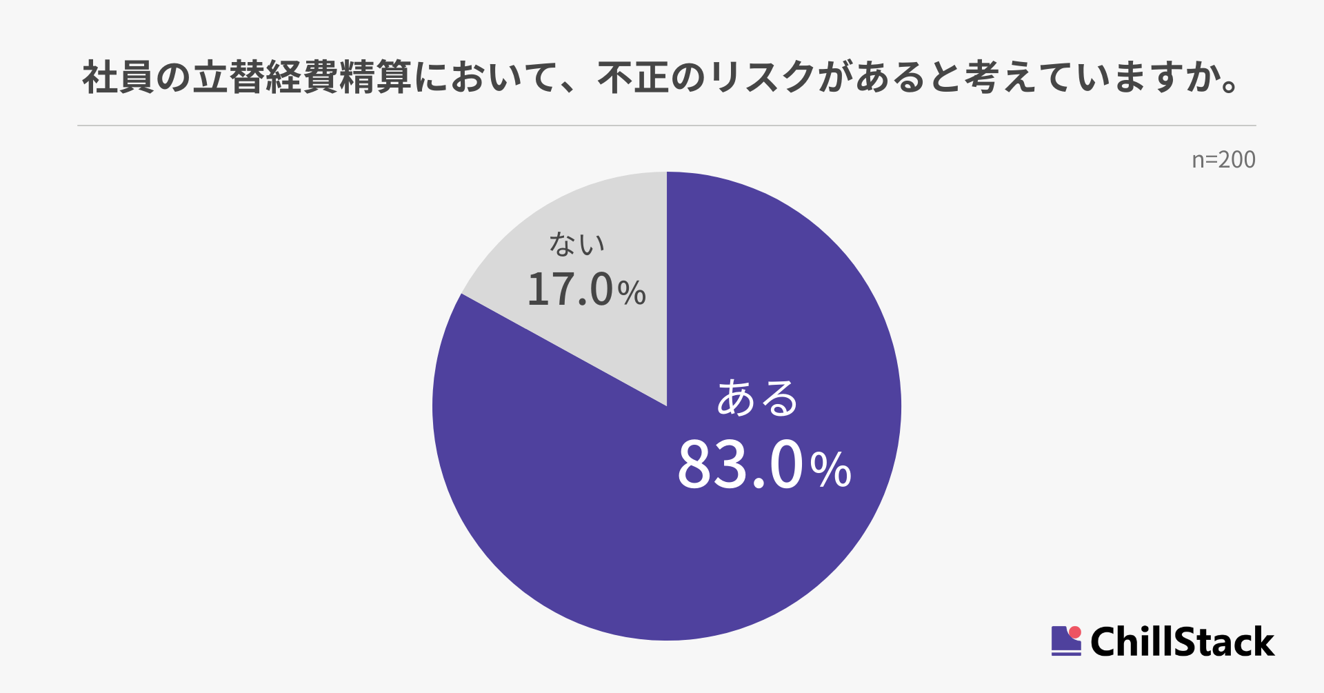 社員の立替経費精算において、不正のリスクがあると考えているか尋ねたところ、83.0%が「ある」と回答しました(n=200)。