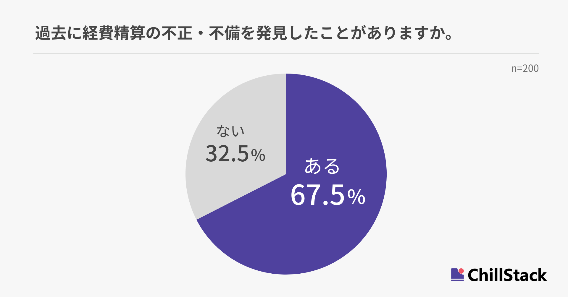 過去に経費精算の不正・不備を発見したことがあるか尋ねたところ、67.5%が「ある」と回答しました(n=200)。