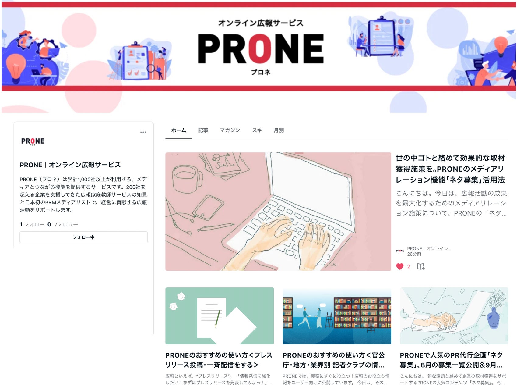オンライン広報サービス「PRONE(プロネ)」が「note」公式アカウントを開設、広報ノウハウや最新トレンドを発信