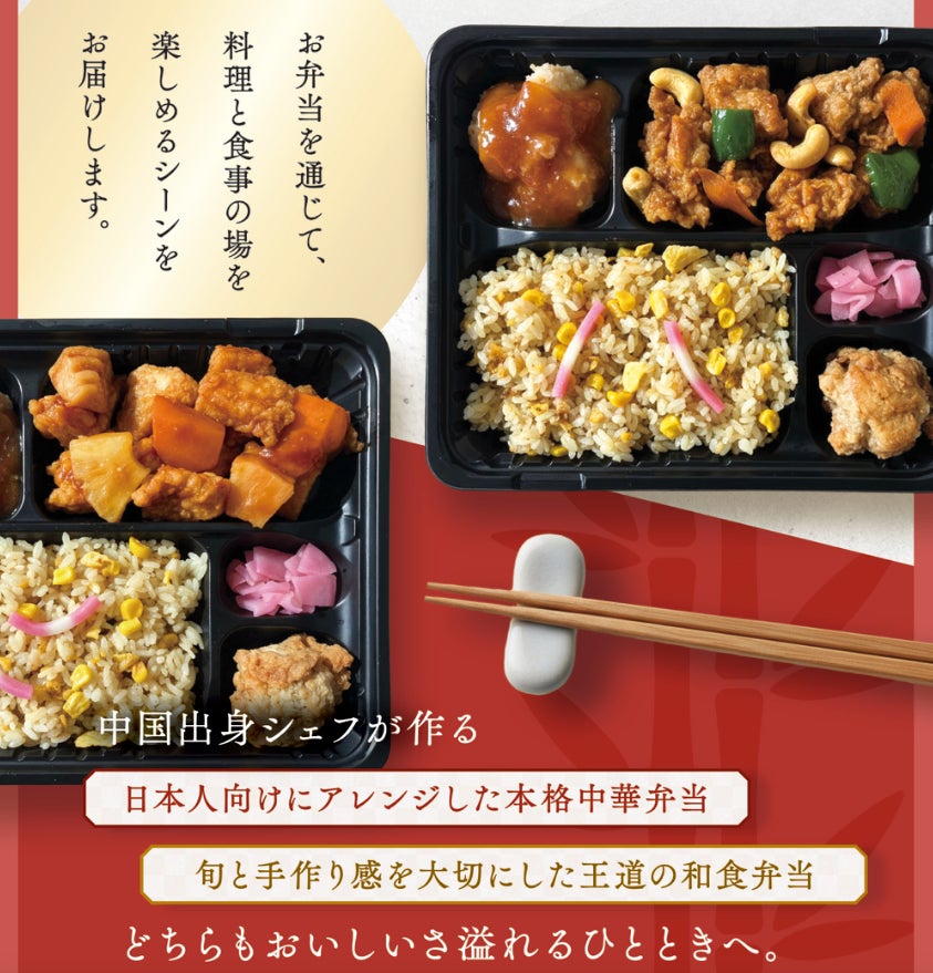 中国出身シェフによる本格的な中華をベースにしながら、日本人の味覚に合わせた繊細なアレンジを行った中華弁当と、季節感や手作り感を大切にした和食弁当を取りそろえ、オフィスで働く人の“その日の気分”に寄り添うランチ体験をご提供します。