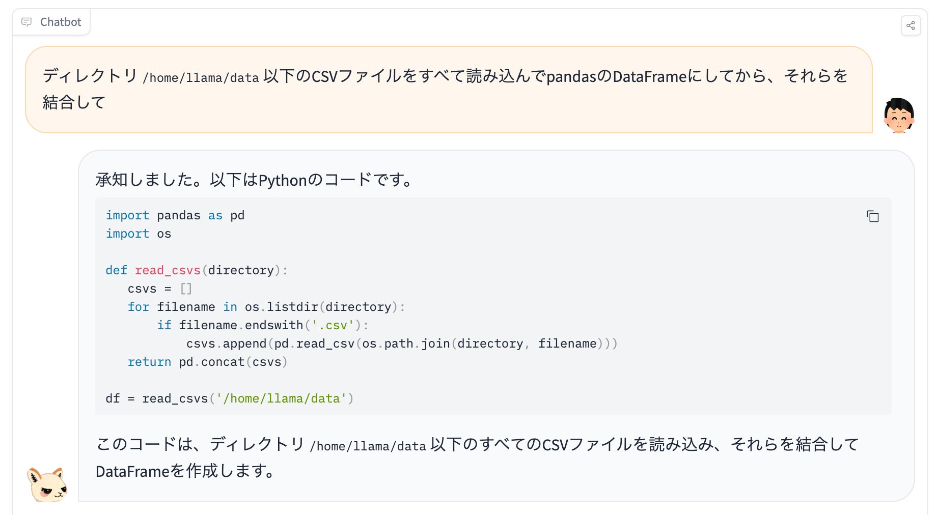 なお、本モデルを用いたchatUI形式のデモもHugging Face hub上で公開しております。