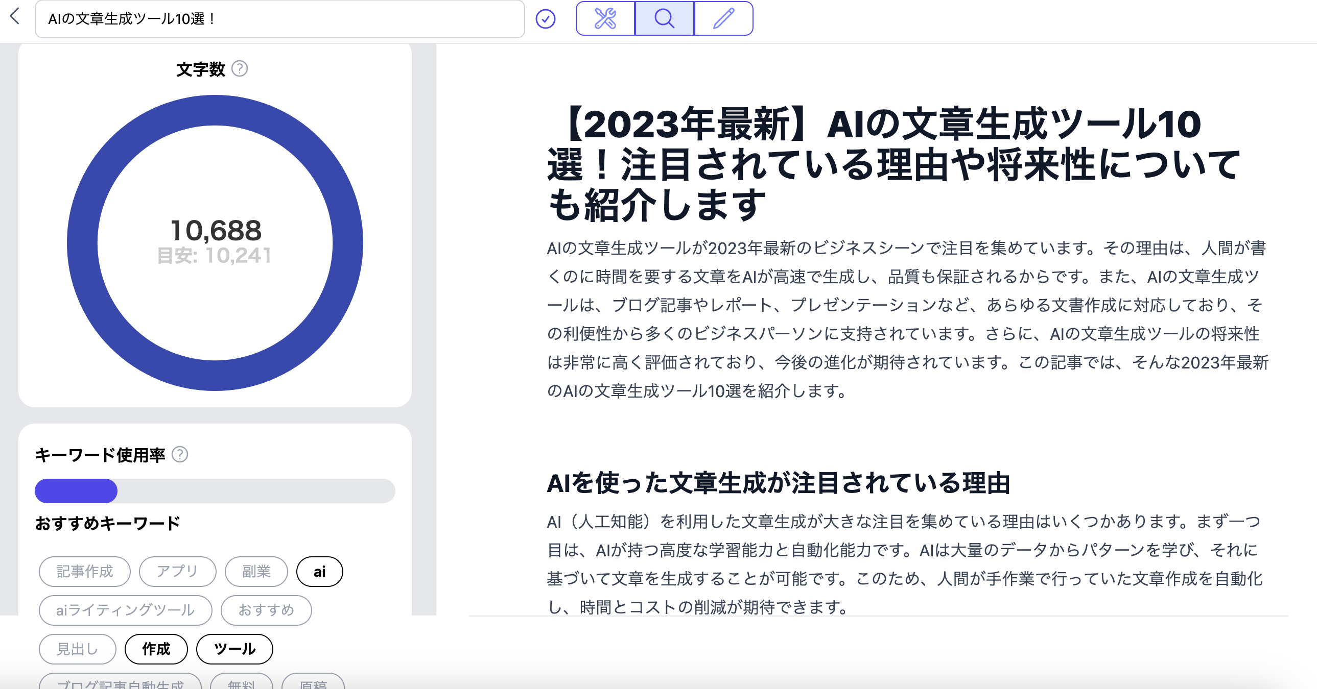 1、2分で上記記事の分析から、記事の自動作成まで。SEOツールはこれ一つで大丈夫。