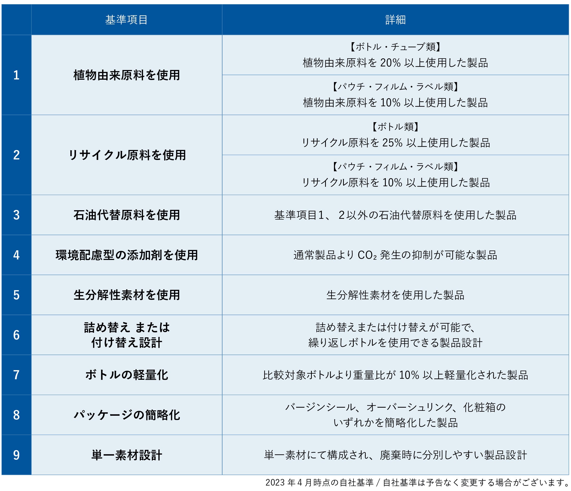 2022年4月1日より施行されたプラスチックの資源循環を目的とした法律「プラスチック資源循環促進法」の基本原則4R※に基づき自社基準を策定しました。