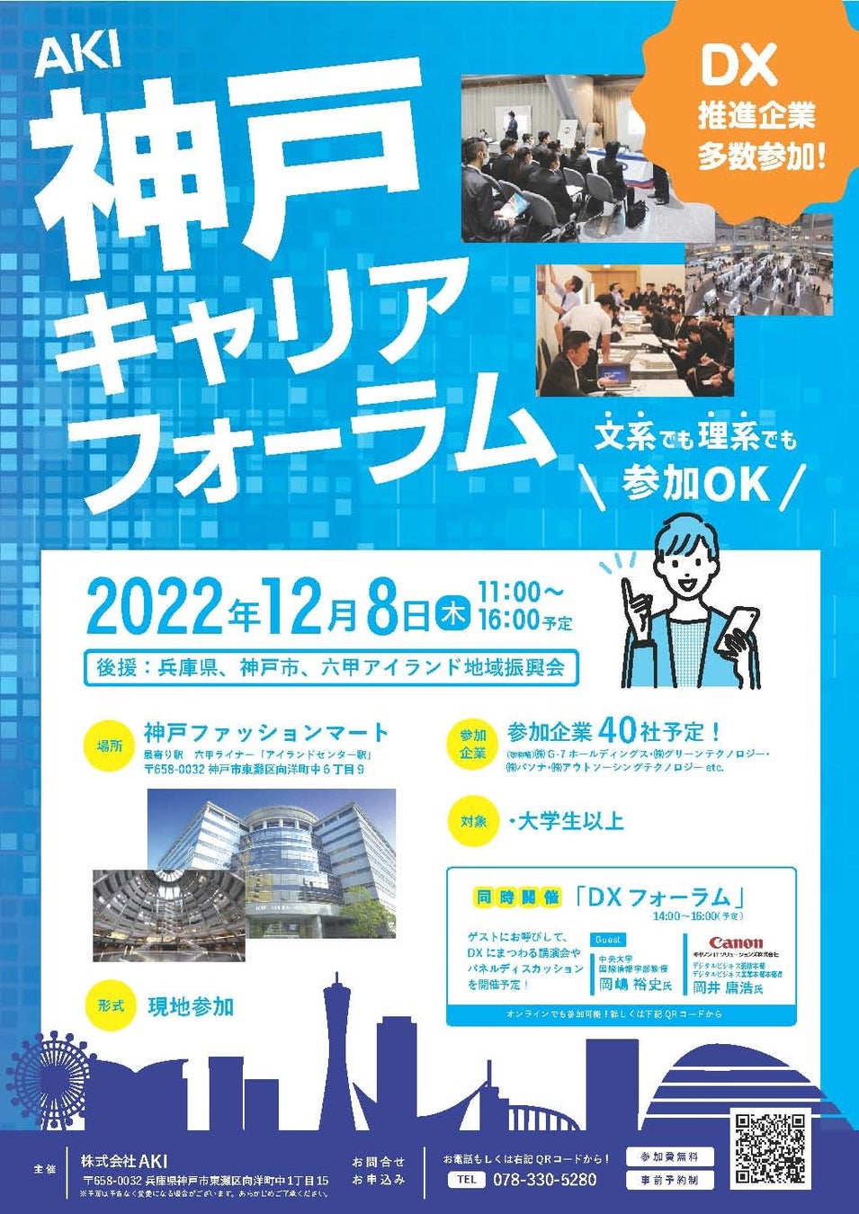 今回はこの「AKI神戸キャリアフォーラム」で、DX(デジタルトランフォーメーション)のことを詳しく知れる「DXフォーラム」も同時開催する。 DXフォーラムはオンラインでも配信する予定。