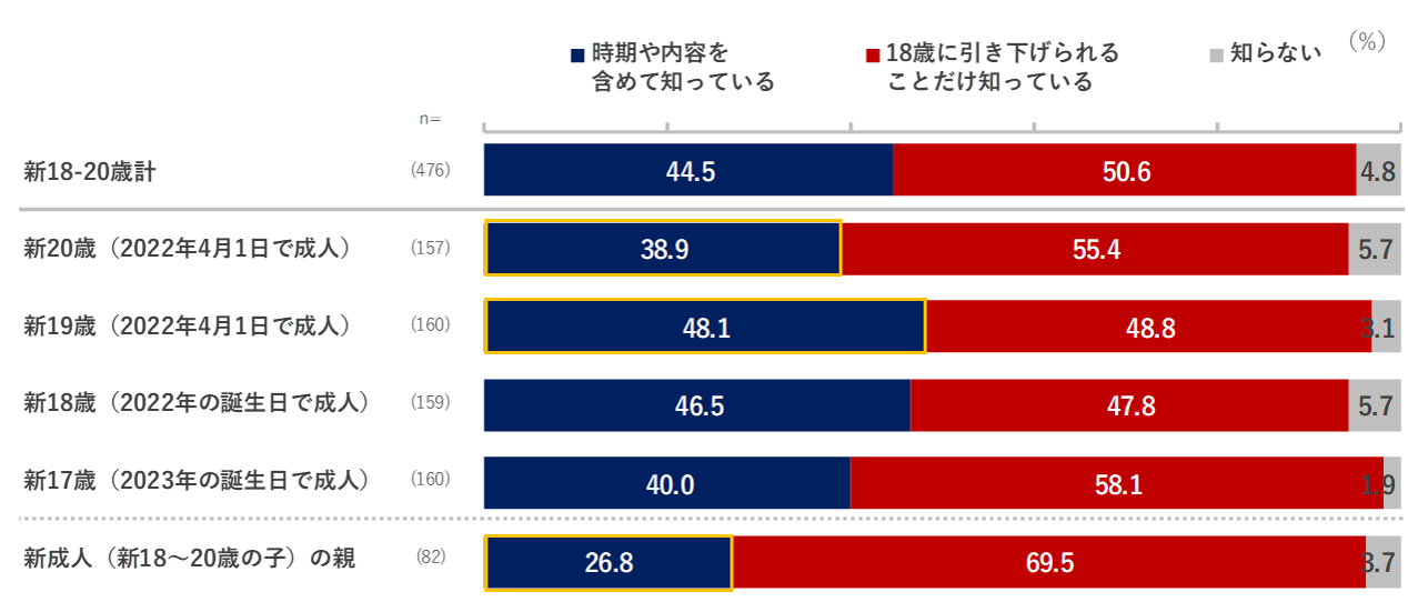 新成人とその親世代で改正内容の認知をはじめ、どのような意識のギャップがあるのでしょうか?