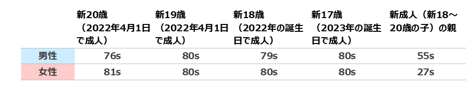 ※本調査の年齢標記「新」は、2022年4月1日~2023年3月31日の誕生日で新たに迎える年齢標記を表し、調査時点の年齢とは異なります。