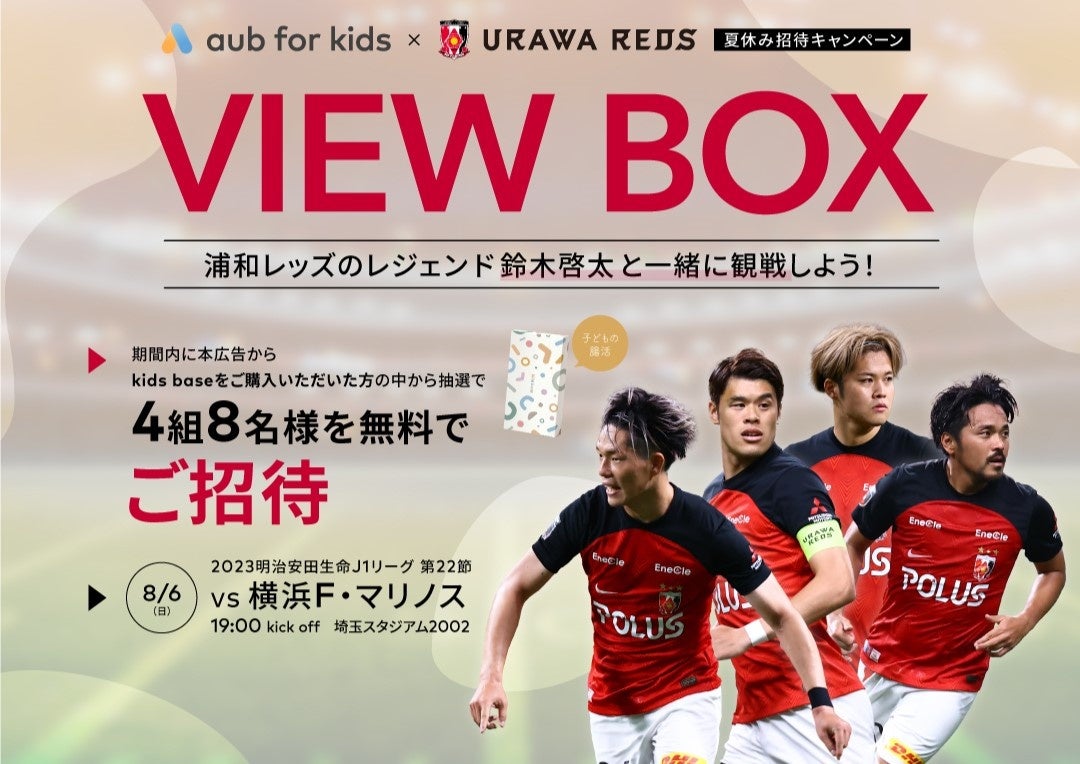 期間内にkids baeをご購入いただいた方の中から抽選で4組8名の親子をVIEW BOXにご招待いたします。代表の鈴木と共に試合観戦をお楽しみにいただけます。