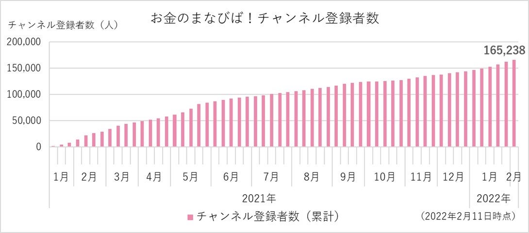 投資信託「ひふみ」シリーズを運用するレオス・キャピタルワークス株式会社(本社:東京都千代田区、代表取締役会長兼社長:藤野 英人、以下「当社」)は、お金や投資についてたのしく・わかりやすく発信するYouTubeチャンネル「お金のまなびば!」にて、チャンネル登録者数が16万人を突破しましたことをお知らせいたします。累計再生回数は約3,300万回となり、チャンネル開設から1年1か月で、金融業界1位の登録者数を達成いたしました(※)。