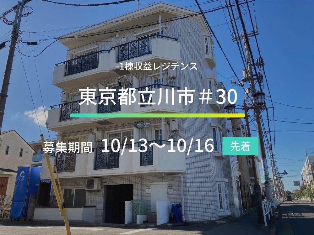 「東京都立川市#30ファンド」(以下、本ファンド)は、多摩モノレール線「立飛」駅徒歩15分に位置する1棟賃貸マンション(以下、本物件)を取得・運営いたします。建物構造等は、鉄筋コンクリート造4階建、外観はタイル張りで、外壁、共用部、屋上等の大規模修繕工事を実施予定となります。また、本ファンド事業者のグループ会社とのマスターリース契約を締結し、収益の安定化を図るとともに、その賃料収入を配当原資とするインカムゲインをベースに、市場への売却(または本事業者の固有財産とし、もしくは他の不動産特定共同事業契約に係る財産とする行為を含む)によるキャピタルゲインも含めた構成となっております。