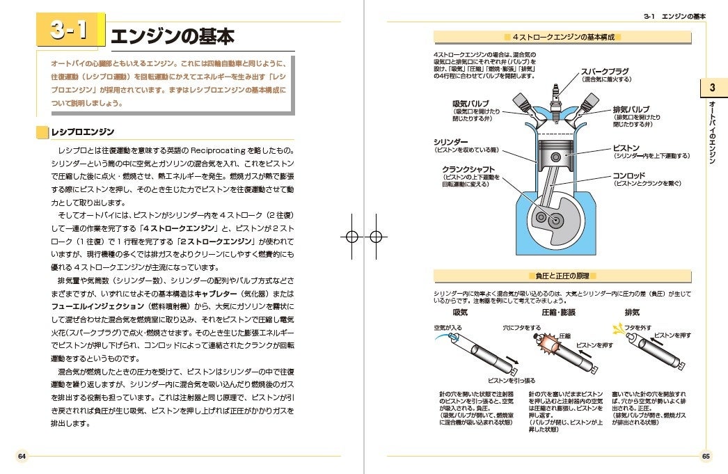 エンジンの基本的な仕組みから、サスペンションのバリエーションなど、基礎知識を得てメンテナンスにも役立ちます。