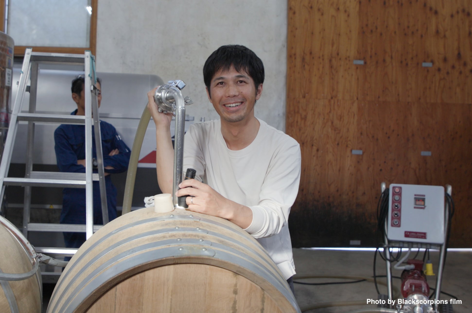家業とは異なる職業に従事していたが、「北海道への移住」と「農業」というテーマに魅力を感じ、2019年に余市町に移住。ドメーヌ・タカヒコでの研修を経て、自園でピノ・グリとツヴァイゲルトを栽培。余市町登町にある古い石蔵を改装し、醸造場を開設し、地域への貢献とワイン産地としての活性や安定、次世代につなげていくことを目指す。自園で栽培するピノ・グリやツヴァイゲルトの他に、近隣農家からの買いブドウでもワインを醸造予定。