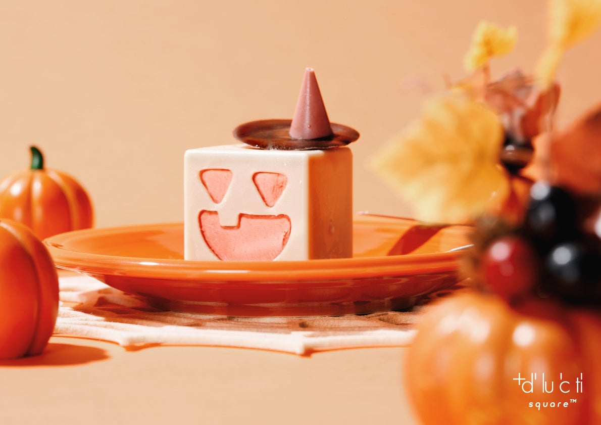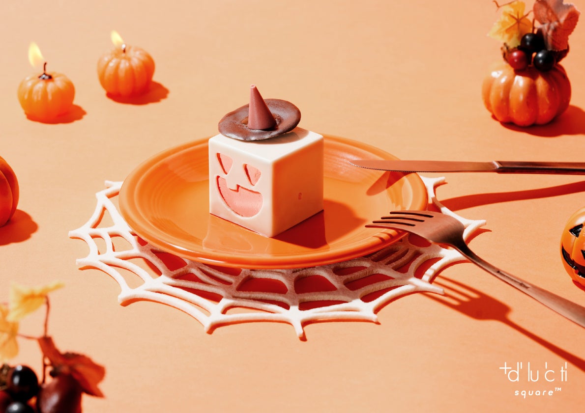 SNSで話題!外はパリパリ中はとろ〜りの新感覚チョコスイーツ「なんとかスクエア」にハロウィン限定"ホワイトチョコxブラッドオレンジムース"味が新登場!大人気・抹茶味も期間限定リニューアル!