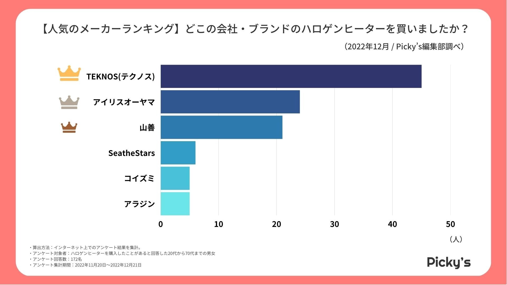 このたびPicky’s(https://rentry.jp/note/)では、ハロゲンヒーターを買う際に意識していることや人気のメーカー・ブランドなどをインターネット上でアンケート調査を行い、ランキングを作成いたしましたので発表いたします。