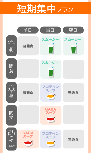 翌日:朝⇒酵素スムージー(昼・夜:普通食)