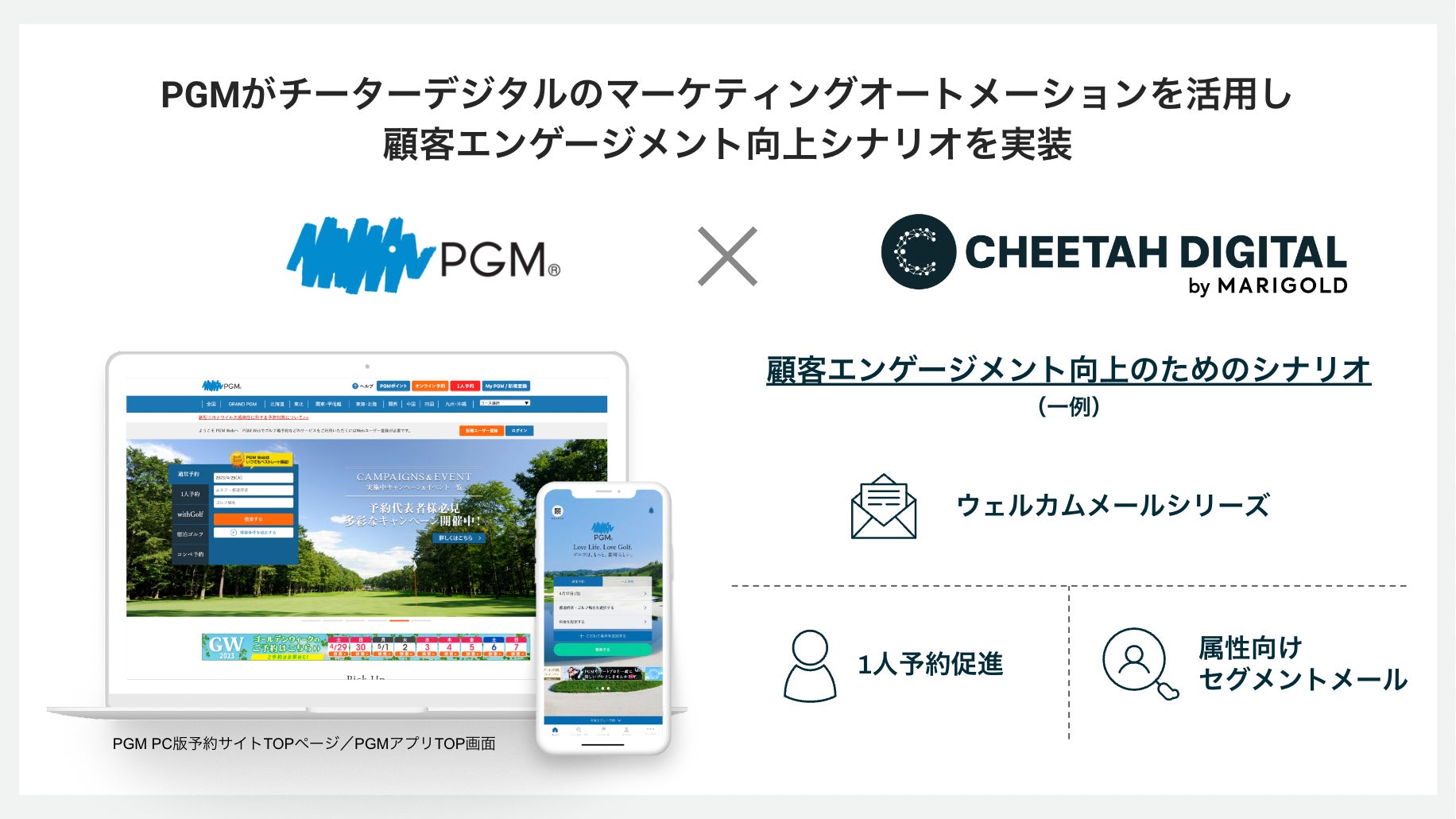 現代のマーケティング担当者向けに、次世代のリレーションシップ マーケティング ソリューションを提供するチーターデジタル株式会社(本社:東京都港区、日本法人代表:白井 崇顕、以下チーターデジタル)は本日、パシフィックゴルフマネージメント株式会社(以下PGM)が、顧客ロイヤルティ向上を目的にチーターデジタルのクロスチャネルメッセージング機能を持つマーケティングオートメーションサービス「Cheetah Messaging」を導入したことを発表しました。