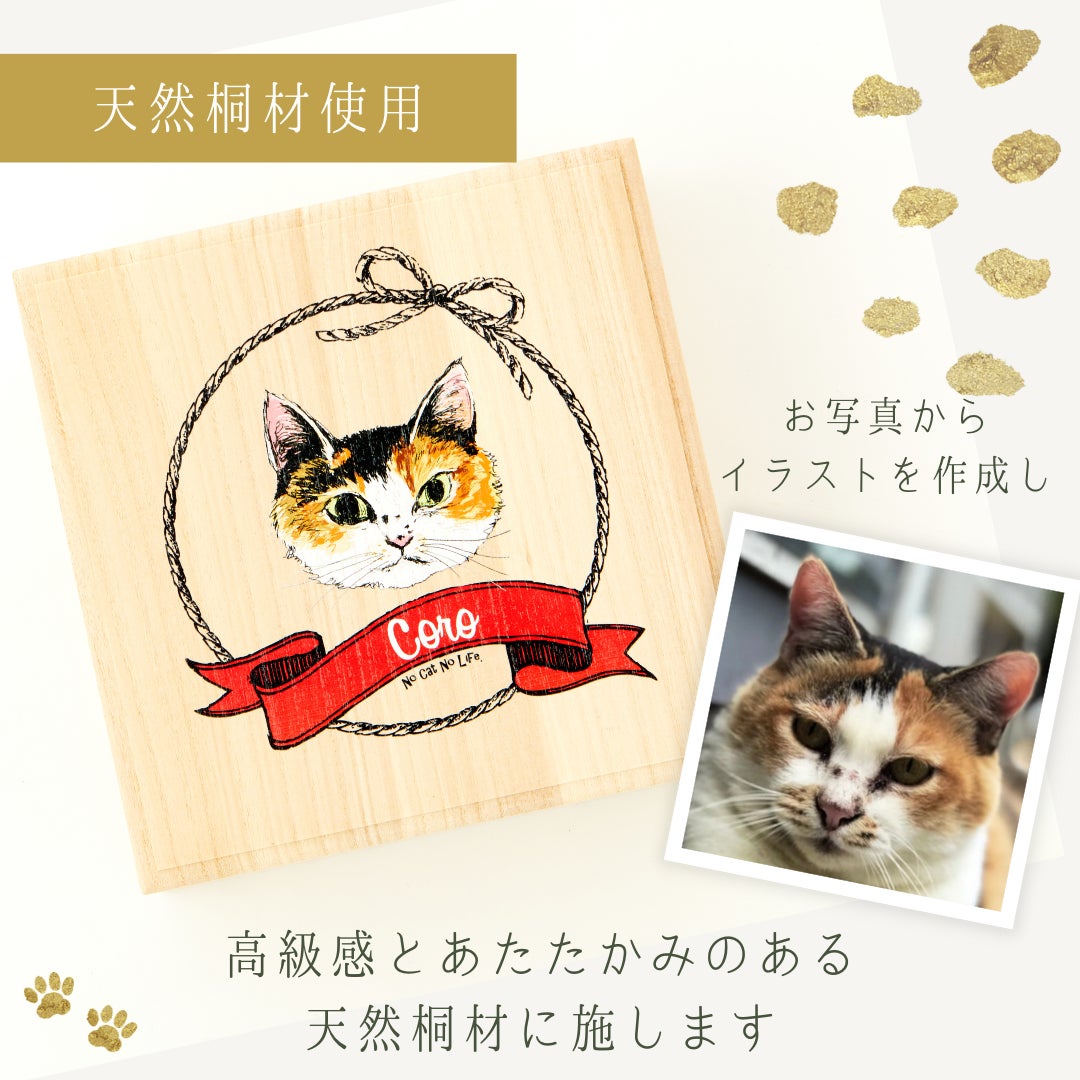 世界にひとつだけ!愛猫のイラスト入りの桐箱におヒゲや乳歯を大切に保管しませんか♪完全オーダーメイド「うちの子専用桐箱シリーズ」新発売
