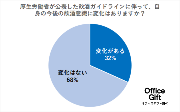 変化はないと回答した方は、今までのアンケート結果と同様に、お酒が好きな人にとってはガイドラインの内容は飲酒意識を左右するものではないため、お酒のプレゼント需要に関しても変化はないと考えています。