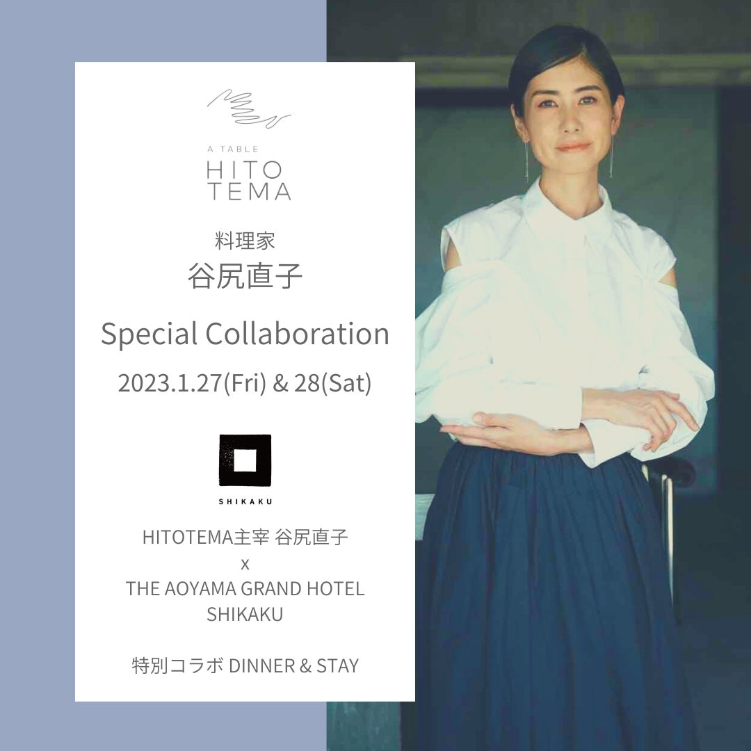 2023年1月27日(金)・1月28日(土)にTHE AOYAMA GRAND HOTELにて予約制レストランHITOTEMA主宰の谷尻直子氏をお迎えして特別コラボレーションイベントを行います。