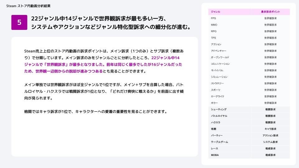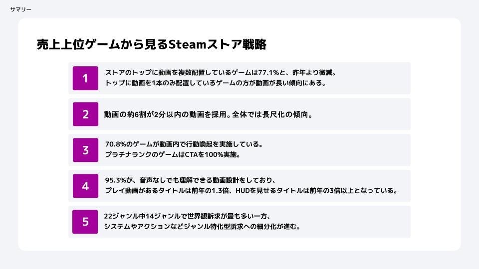 本リリースでは、Steamストア動画分析調査内容の一部を公開いたします。