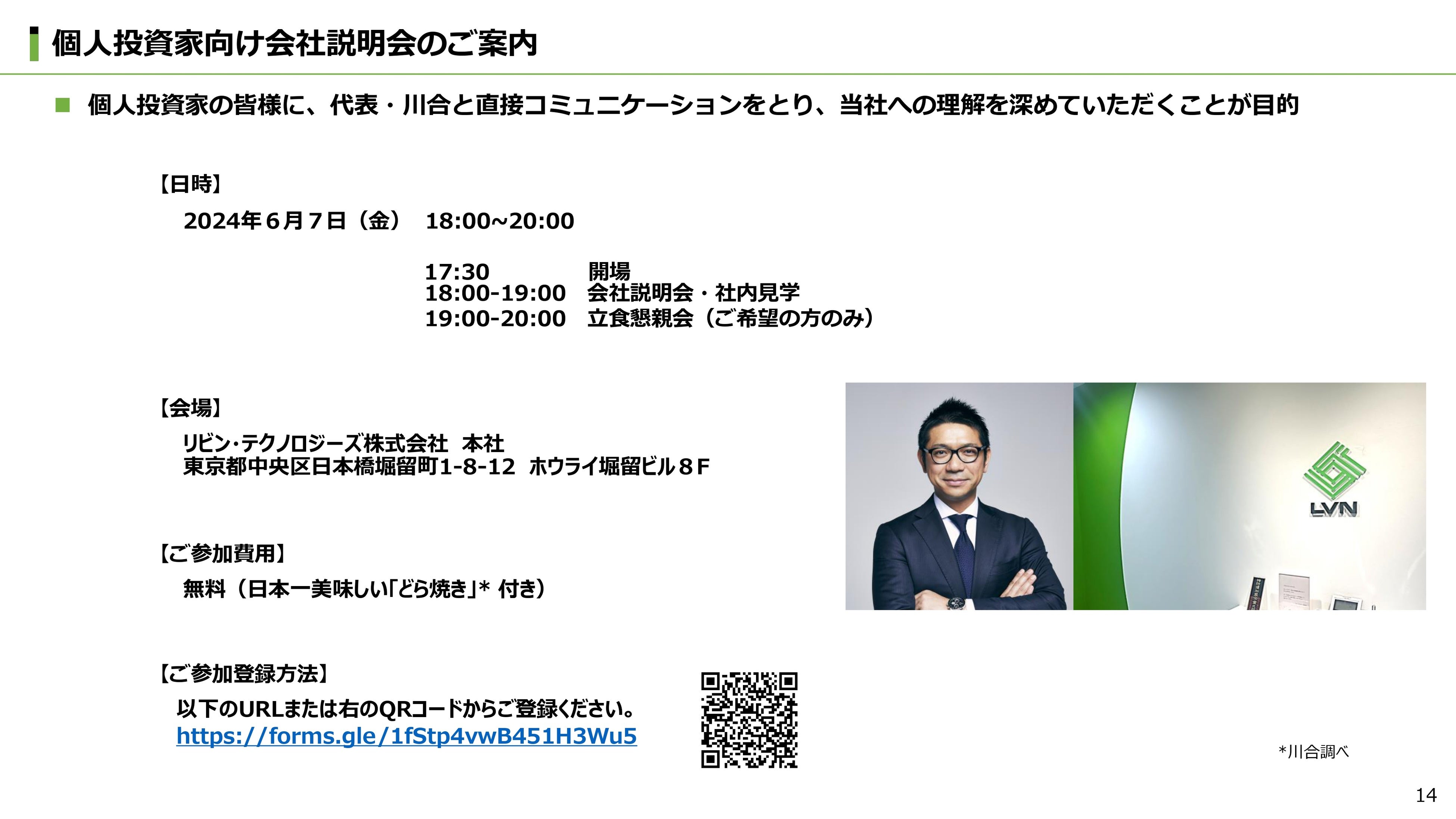 ・2024年3月28日開示「個人投資家様向け会社説明会・社内見学開催のお知らせ」