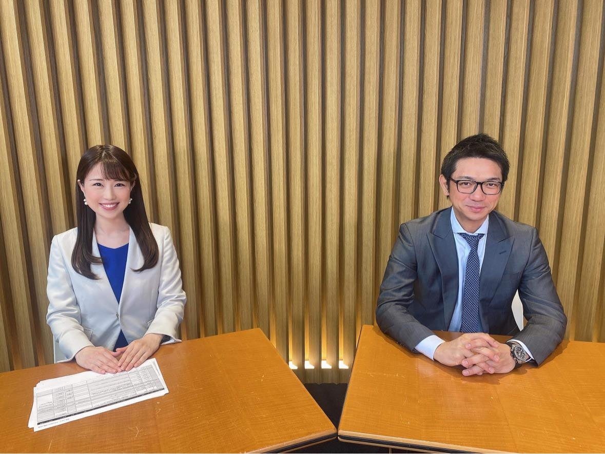 (左:番組MC 道岡 桃子さん 右:当社代表取締役社長 川合)