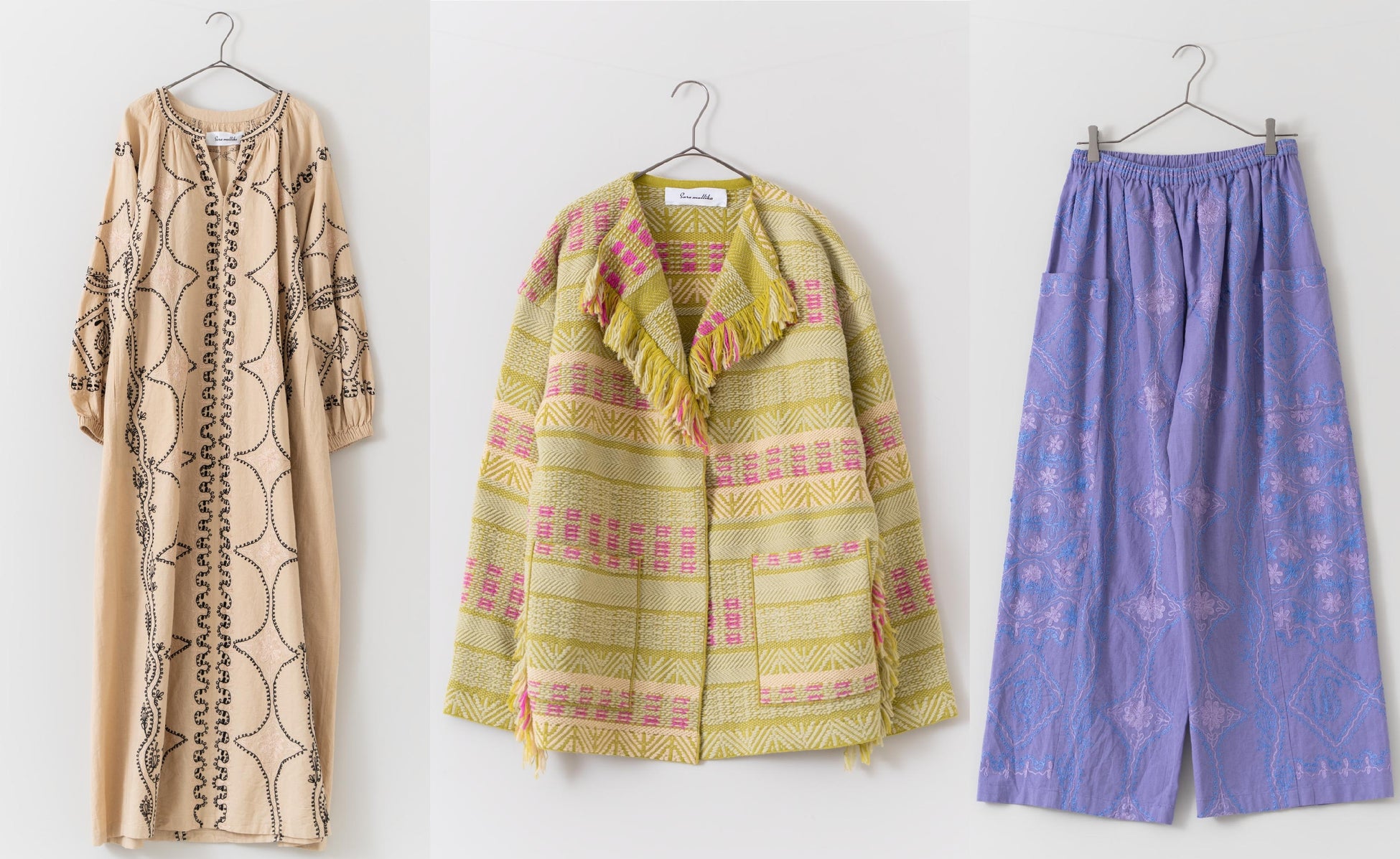 インドを生産背景にもち、テキスタイルや刺繍を得意としたアイテムを多く展開。ボーダレスな審美眼を持ち、多様な美しさを受け入れ、自分らしく自由にミックスする感性を大事に、インドの職人の伝統的な技法やセンスを取り入れながらデザインしています。