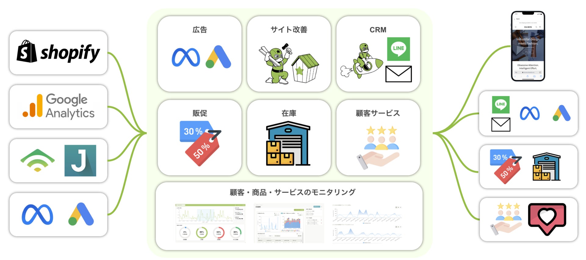 プラットフォームを活用して、マーチャント別の勝ちパターンの発見とグロース施策の自動化により、確度の高い成長を実現しています。