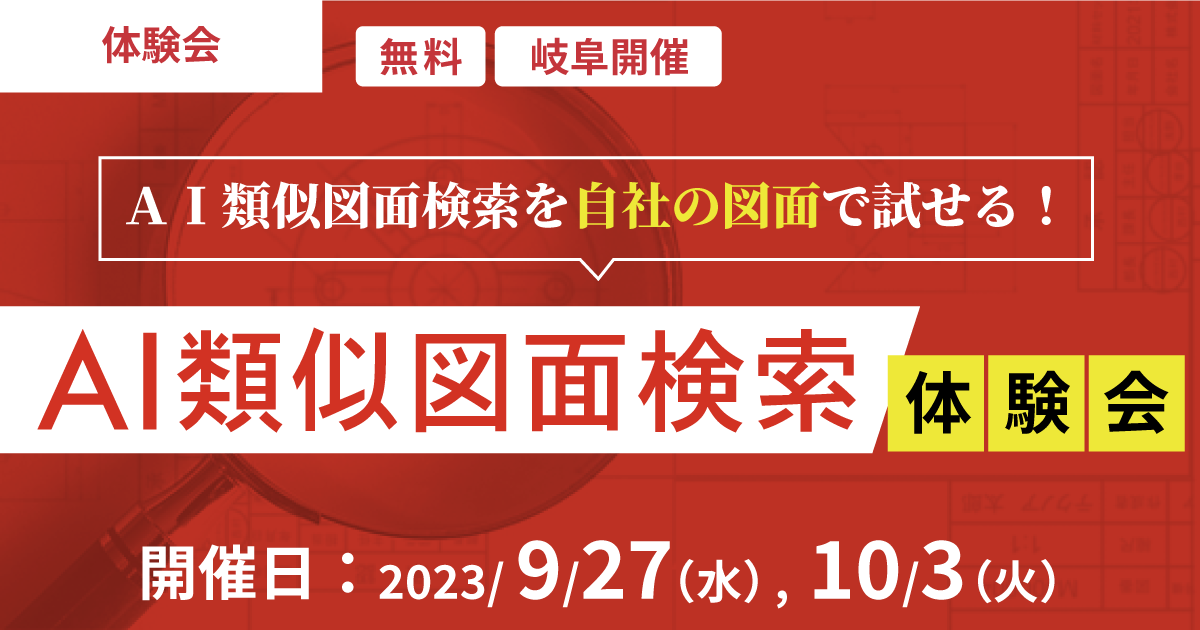 株式会社テクノアは、2023年9月27日(水)、10月3日(火)の2日間、岐阜本社にて『AI類似図面検索』の体験会を開催します。各時間帯先着1社様限定となっておりますので、お早めにお申込みください。