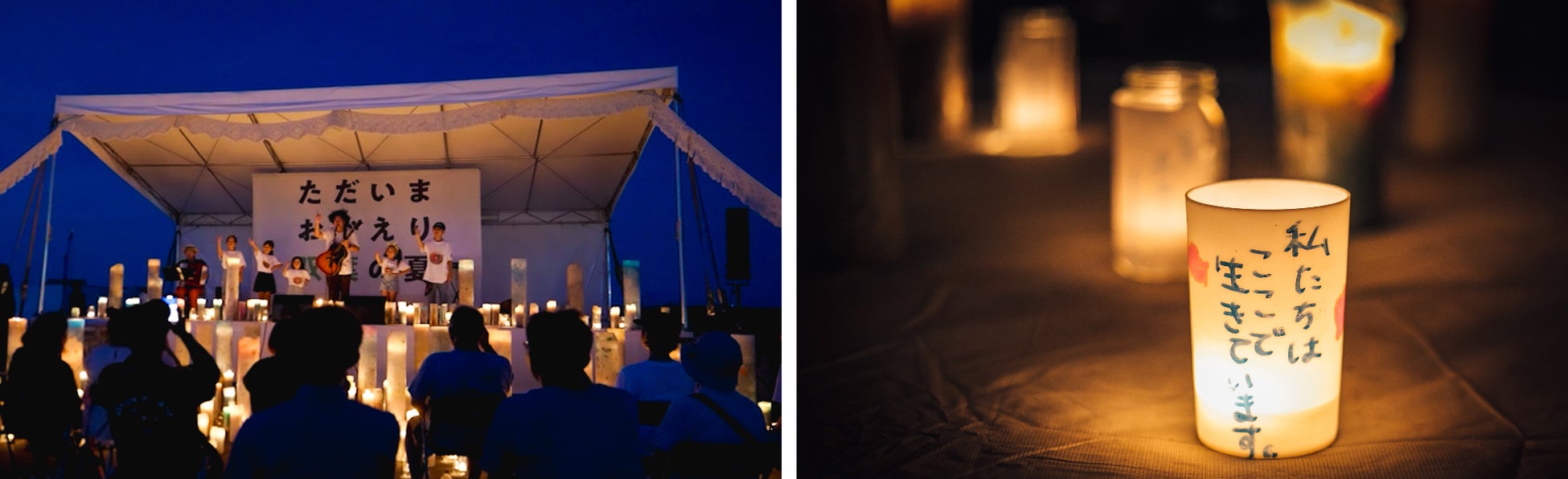 日暮れからキャンドルも灯り、双葉の復興や能登への想いを寄せるキャンドルメッセージも募集し灯します。