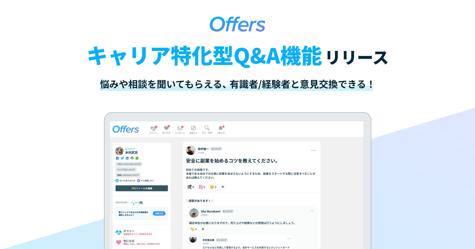 あなたのキャリアの悩みを有識者/経験者に質問・回答できる!Offers「キャリア特化型Q&A機能」β版リリース