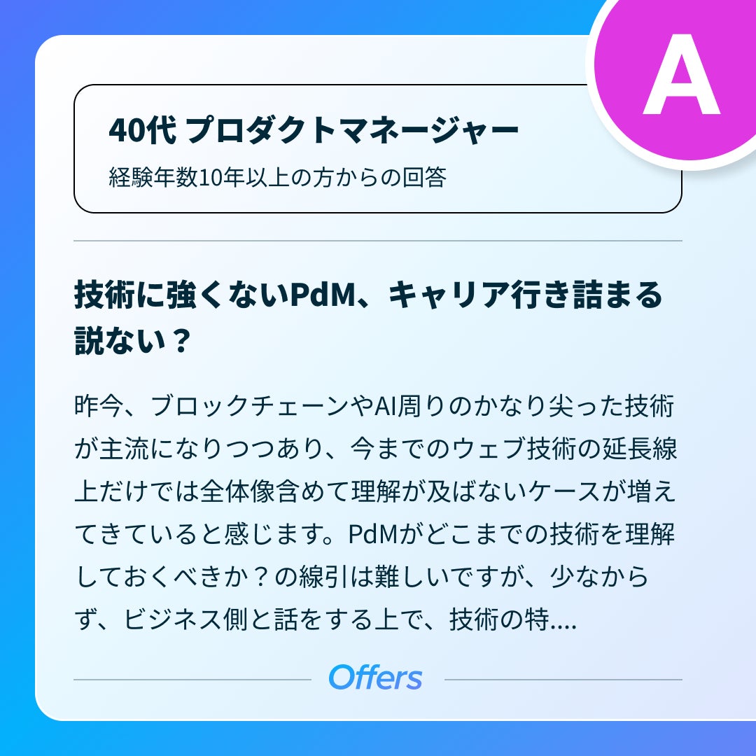 >> ログインして、Offers「キャリア特化型Q&A機能」をみる