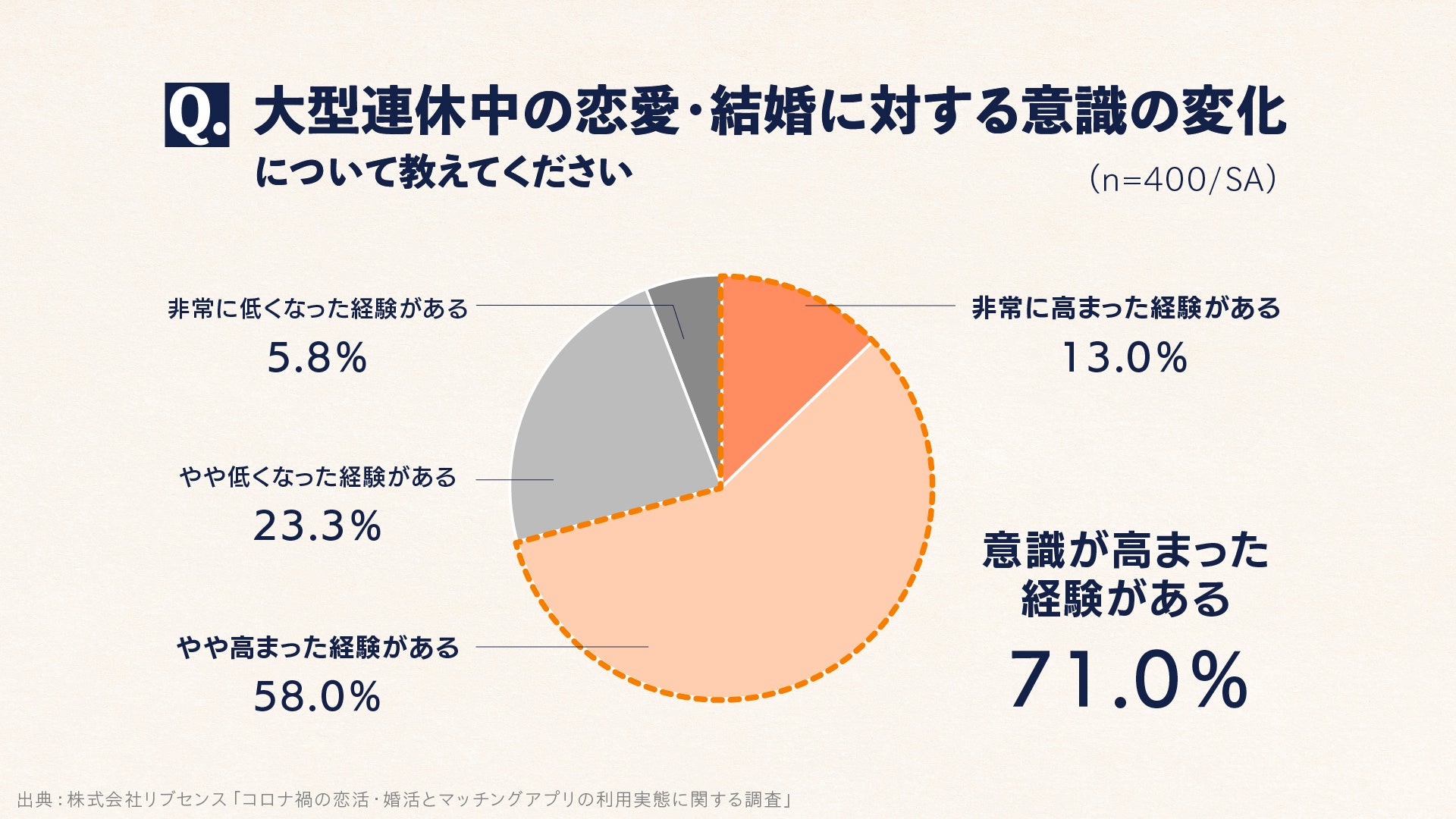 7割以上が大型連休中に「恋愛・結婚への意欲が高まった」 と回答。