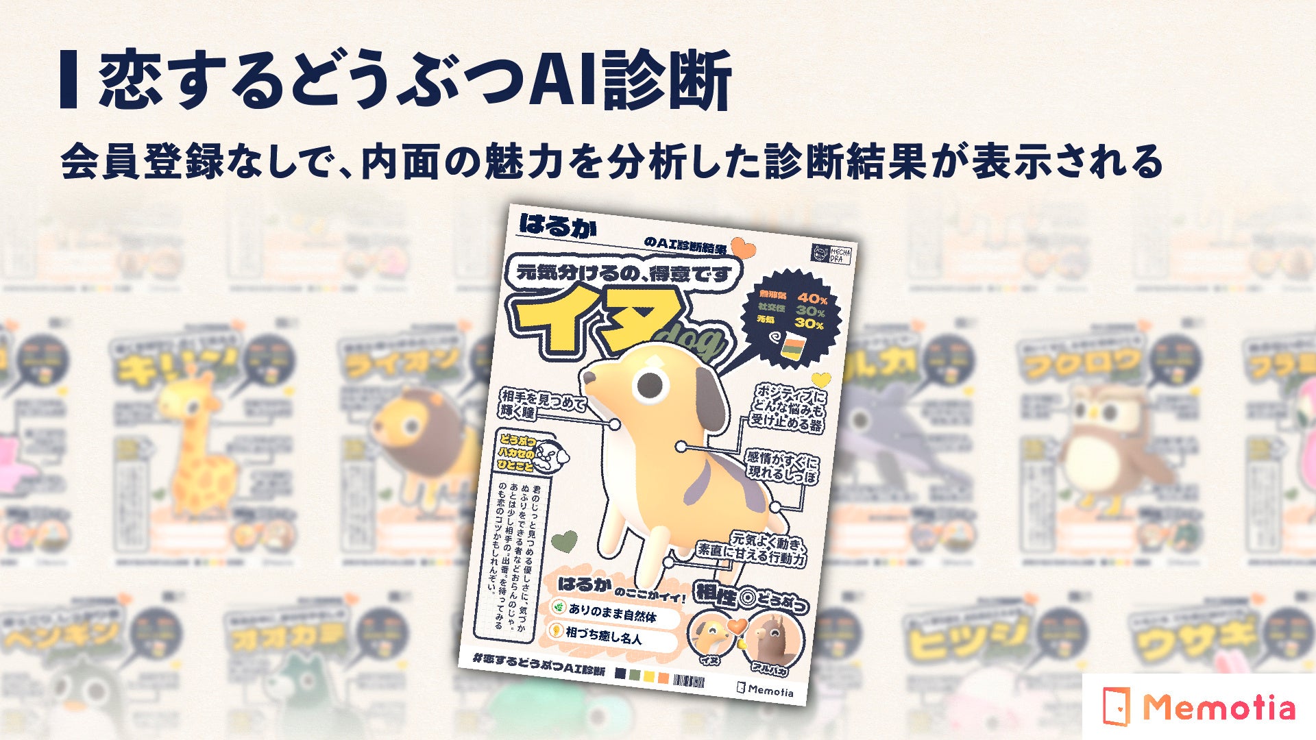 AIトークの内容を基に、内面の魅力や特徴を診断する恋するどうぶつAI診断機能