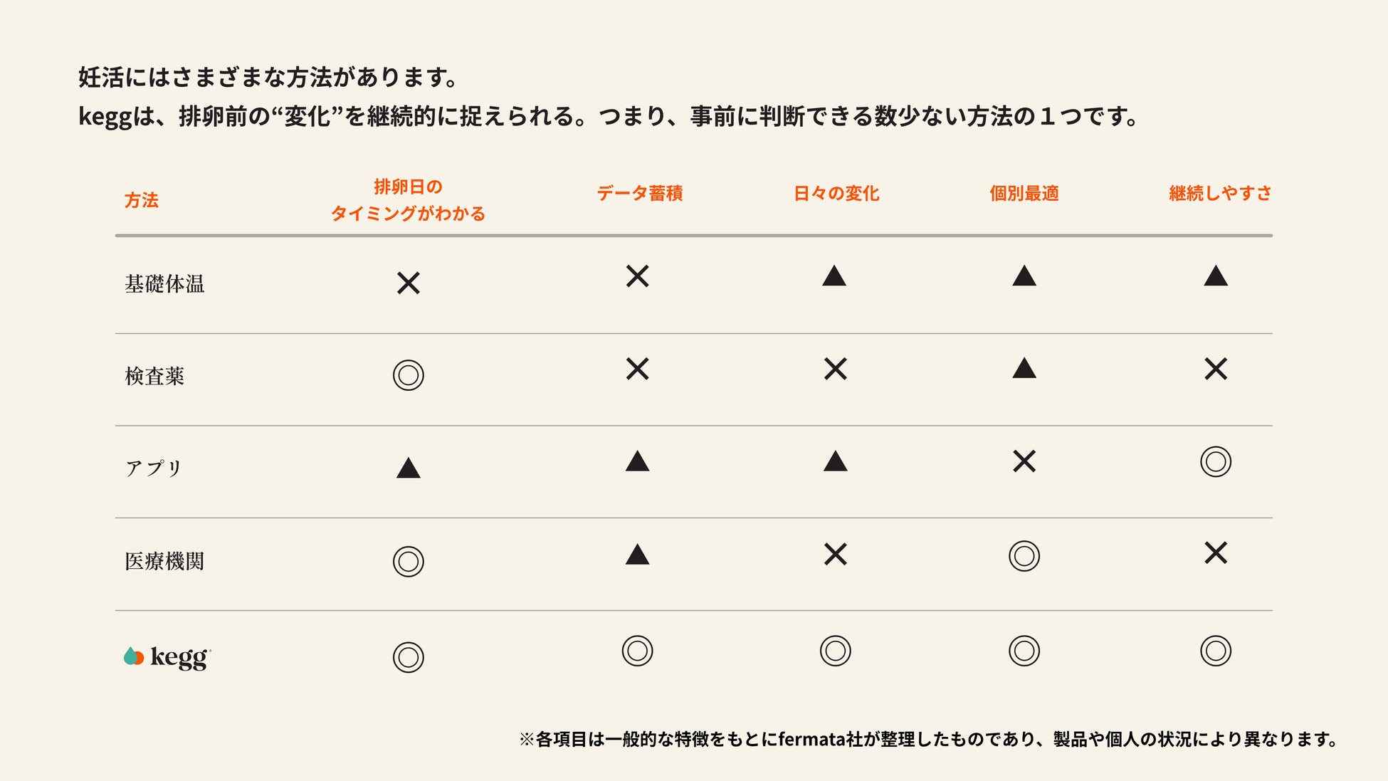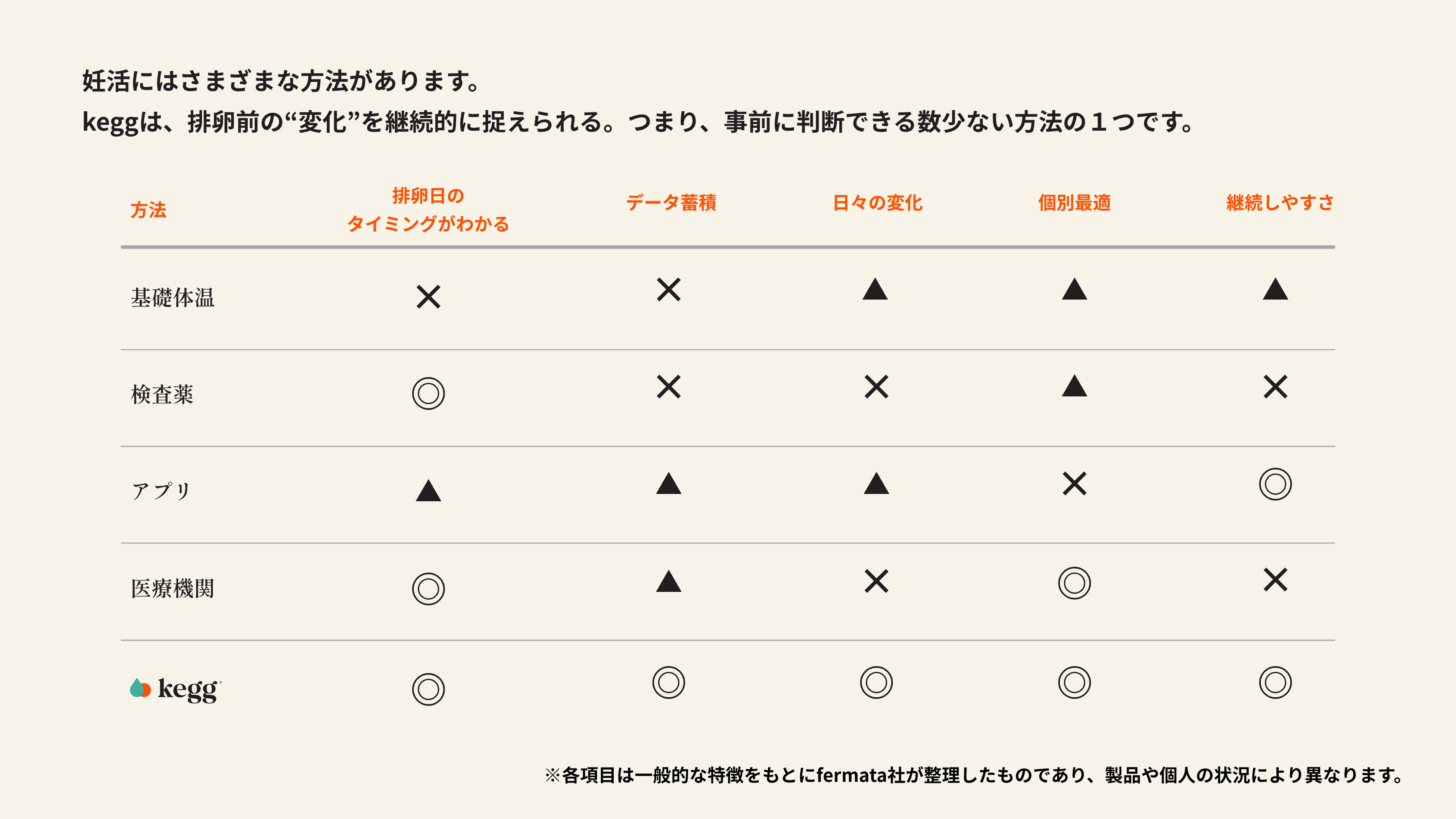 keggは、その間にある第三の選択肢として、日々のデータをもとに自分のからだを理解し、より正確なタイミングを把握するための新たなアプローチを提示します。