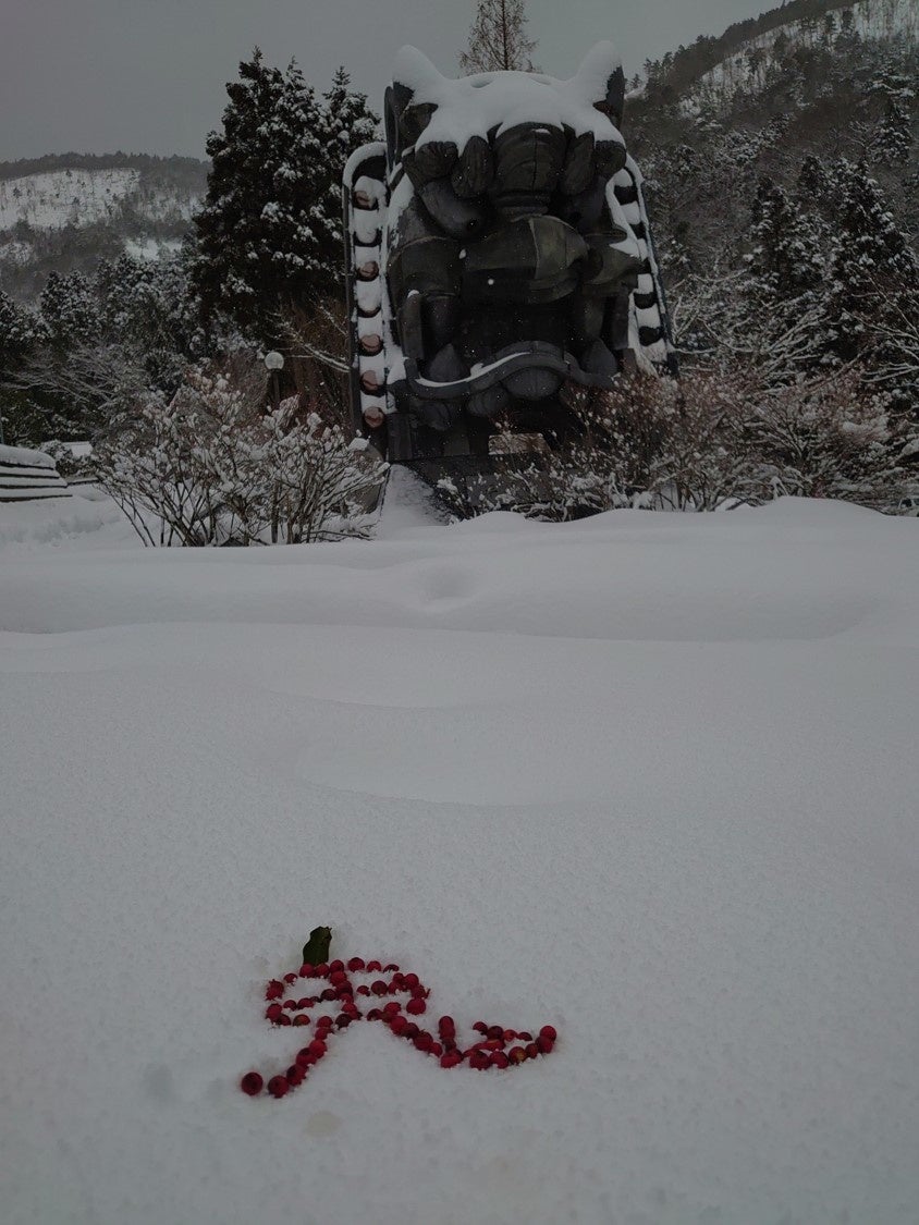 さらに、「鬼鬼祭」にあわせて、2/2に大江支所の職員が「鬼おにマスク」と「鬼のツノ」を業務中に着用して鬼になりきります。また、大江地域の信用金庫やJA、郵便局などの事業所で「鬼おにマスク」を着用いただきます。大江地域にはまちの至るところに鬼のモチーフがあり、リアル「鬼鬼祭」が年中開かれているような地域です。この企画に参加された皆様が、新型コロナ禍が落ち着いた暁には、ぜひ訪れていただけることを期待しております。