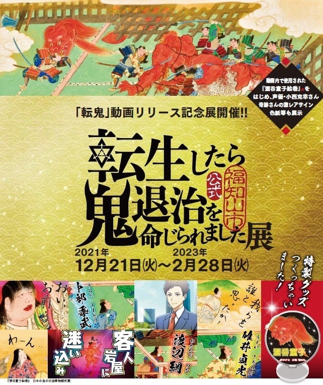 【概要】 略して「転鬼展」。WEB動画で使用している『酒呑童子絵巻』を日本の鬼の交流博物館(鬼博)で約1年間、ローテーション形式で特別公開。館内には、源頼光と酒呑童子の「特大パネル」を設置。