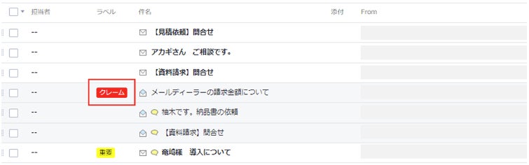 クレームリスクの高いメールと判定された場合、自動でラベルが付与され、ひと目でクレームリスクのあるメールだと分かるため、迅速かつ適切な対応が可能になります。これにより、大きな問題やクレームの発生を未然に防ぎます。