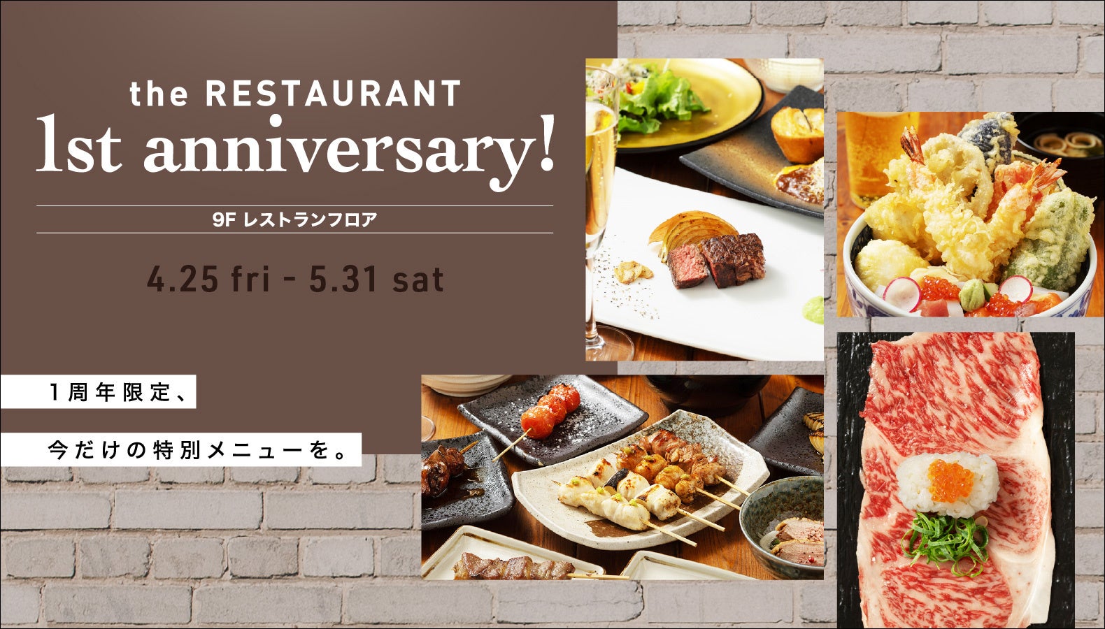 2024年4月25日にグランドオープンした横浜モアーズ9階レストランフロアが、この度1周年を迎えました。日頃の感謝の気持ちを込め、各店よりオープン1周年をお祝いするメニューが登場致しました。各店こだわりの逸品を、この機会にぜひご堪能下さい。