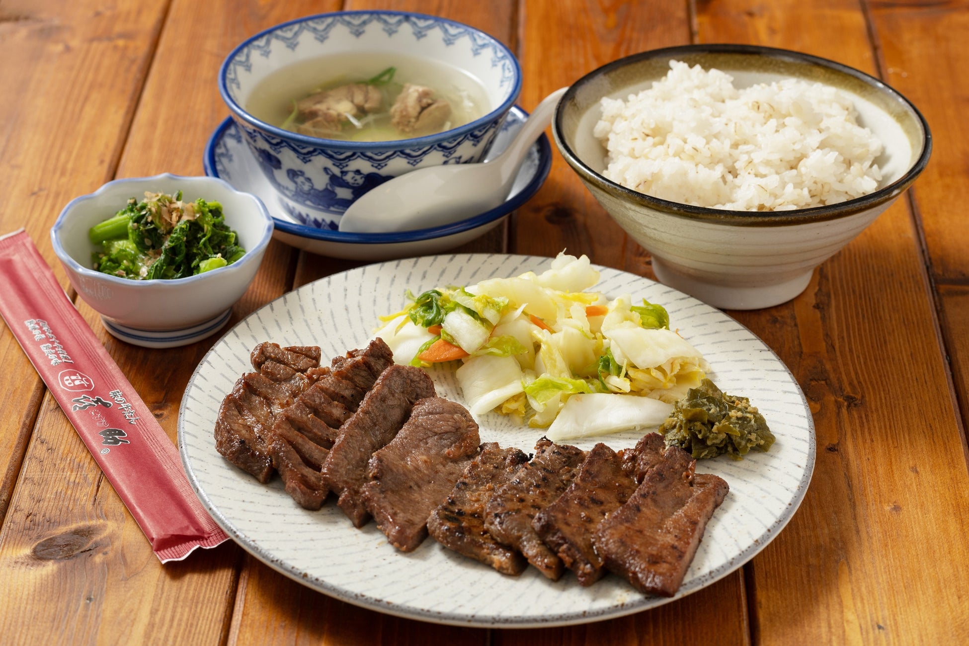 厚切り、塩、タレ、みそを1枚ずつ喜助の味の牛たん全てをお手軽に楽しめる一品です。
