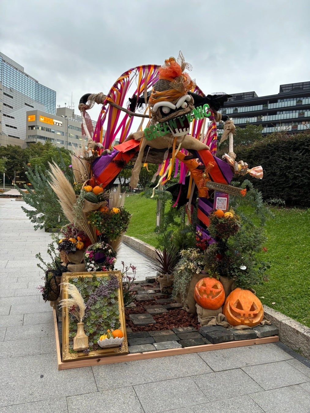 「花で楽しむハロウィン」をコンセプトに公園内を花で彩り、都心に憩いの空間を提供することを目的としたイベントです。花の装飾だけでなく、市民と一緒につくる花壇や、ハロウィンを楽しむオブジェなど、さまざまな活動を通して、福岡のまちの風景づくりに、市民と一緒に取り組みました。