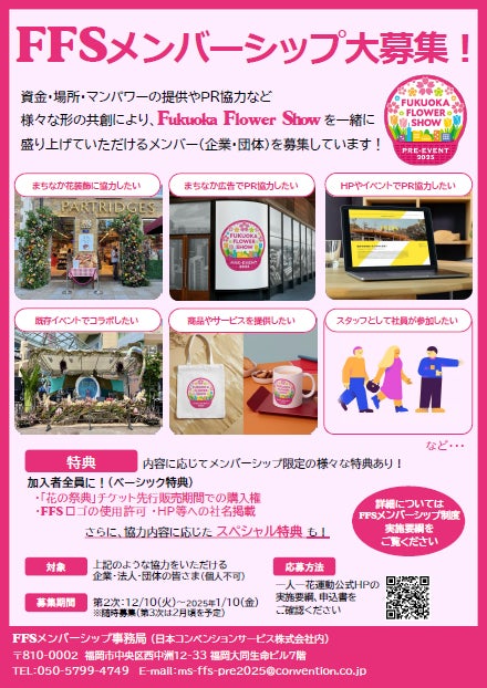 福岡市では現在、Fukuoka Flower Show Pre-Event等を一緒に盛り上げていただける共創メンバーを募集しています。ぜひ皆さんと一緒に花による共創のまちづくりを目指して取り組んでいきたいと考えていますので、引き続き、ご協力の程よろしくお願いいたします」