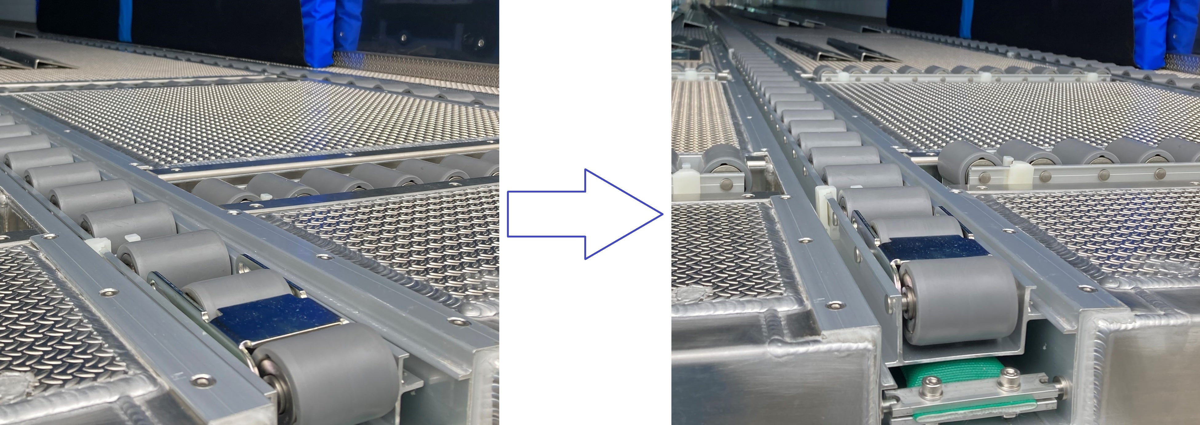床面に埋め込まれたローラーが、空気圧で上昇。